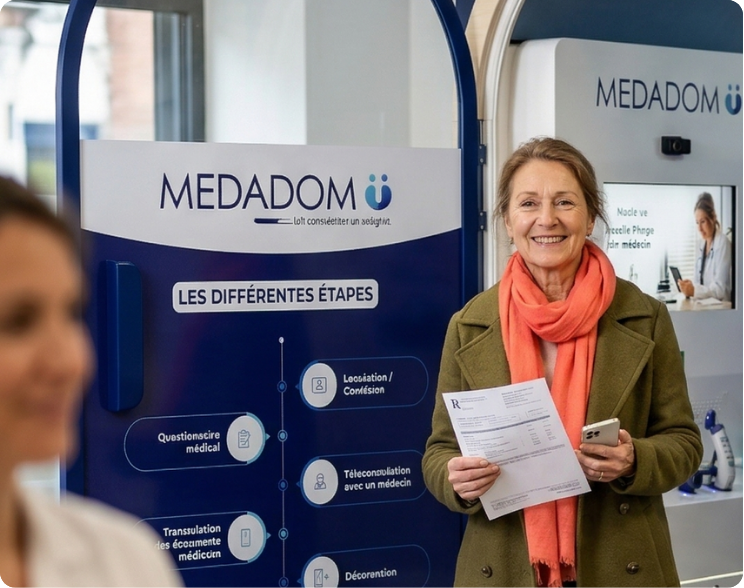 De la recherche de votre pharmacie partenaire jusqu'à la remise de votre ordonnance, MEDADOM simplifie chaque étape de votre consultation.